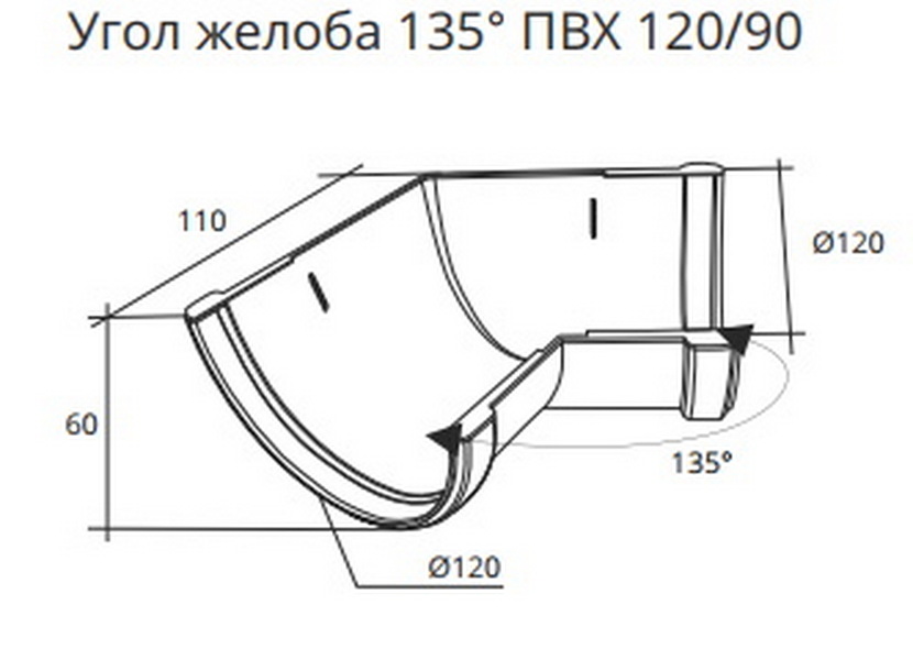 Угол желоба 135 градусов Grand Line Классика 120|90 ПВХ — ключевой элемент для адаптации вашей водосточной системы под архитектурные особенности дома. Прочный, легкий и устойчивый к коррозии материал гарантирует долгую службу и сохранение эстетичных свойств водостока.
