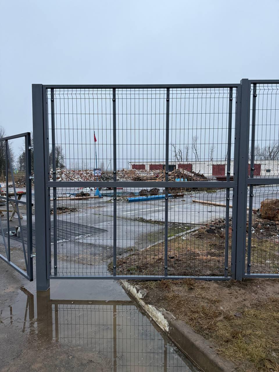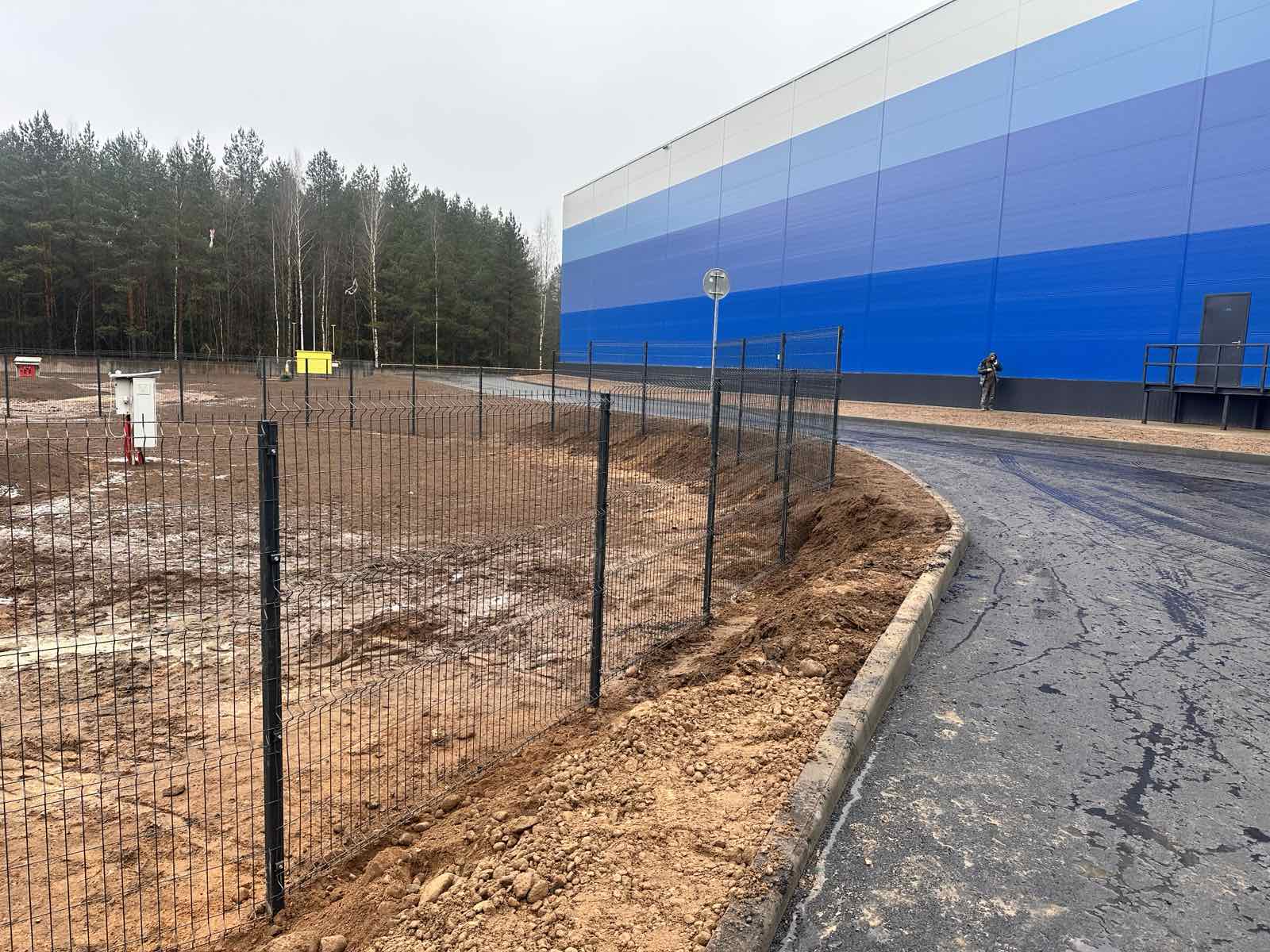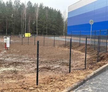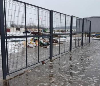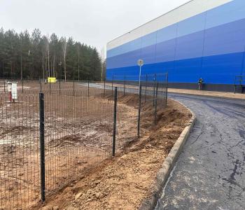 В данном проекте реализован забор из двойной рамки с заполнением 3D-сеткой для промышленного объекта под Минском. Высокое ограждение высотой h=2,4 метра обеспечивает надёжную защиту территории и отвечает повышенным требованиям к безопасности и прочности на производственных площадках.