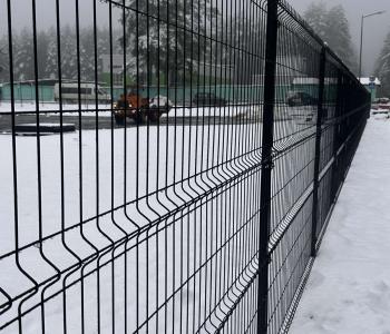 Заполнение 3D-сеткой позволяет сохранить обзор территории и светопроницаемость, при этом чётко обозначая границы объекта и препятствуя несанкционированному проникновению. Объёмные V-образные рёбра жёсткости дополнительно усиливают панели и предотвращают деформации на длинных пролётах.
