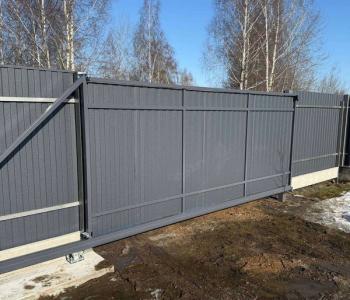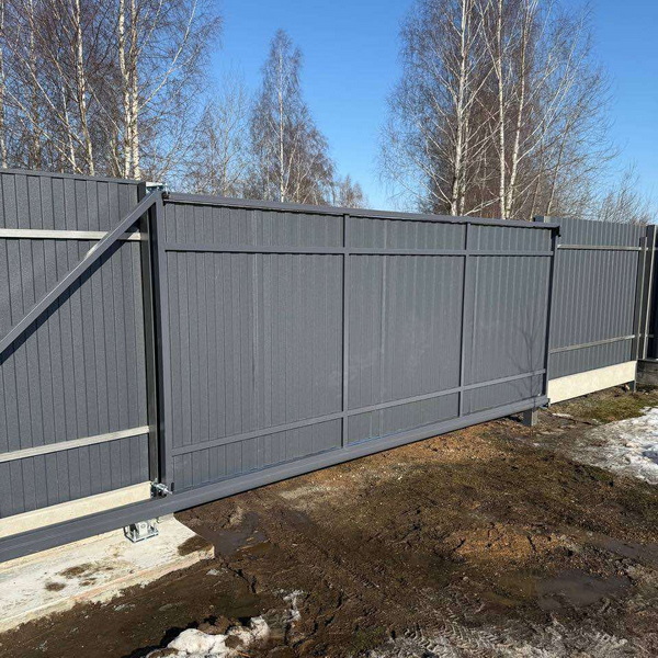 В условиях Минской области, где наблюдается выраженный сезон из‑за снега, дождей и перепадов температур, все металлические элементы ворот и забора требуют минимального обслуживания. Полимерное покрытие столбов и качественный профлист защищают конструкции от коррозии, что снижает риск появления ржавчины и необходимости частого ремонта.